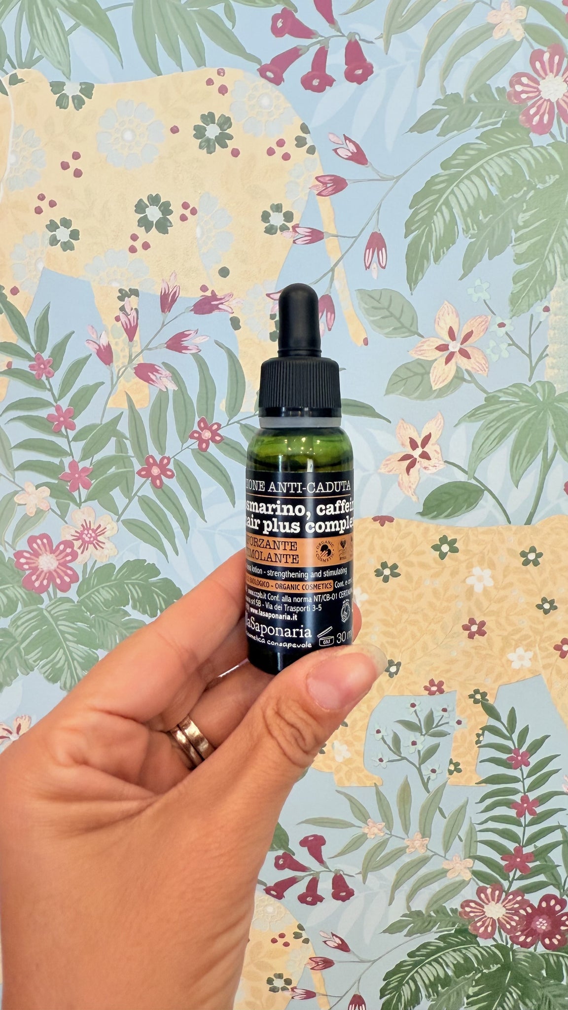 La lozione rinforzante capelli al rosmarino è un concentrato di attivi dall’efficacia stupefacente per contrastare la caduta dei capelli: il rosmarino è utile per rinforzare i capelli e favorirne la crescita così come i prebiotici di cicoria che vanno a rinforzare il naturale microbiota cutaneo e creare un ambiente favorevole alla salute dei capelli, mentre l’estratto di canapa, insieme a taurina e il dipeptide citrullinil-arginina contenuti nell’estratto di alga chondrus, rinforzano e migliorano il tasso di crescita dei capelli. Gli effetti della lozione anticaduta per uomo sono potenziati dall’esclusivo Hair Plus Complex, un fitocomplesso vegetale che contrasta la caduta dei capelli e offre risultati visibili già dopo 3 mesi!