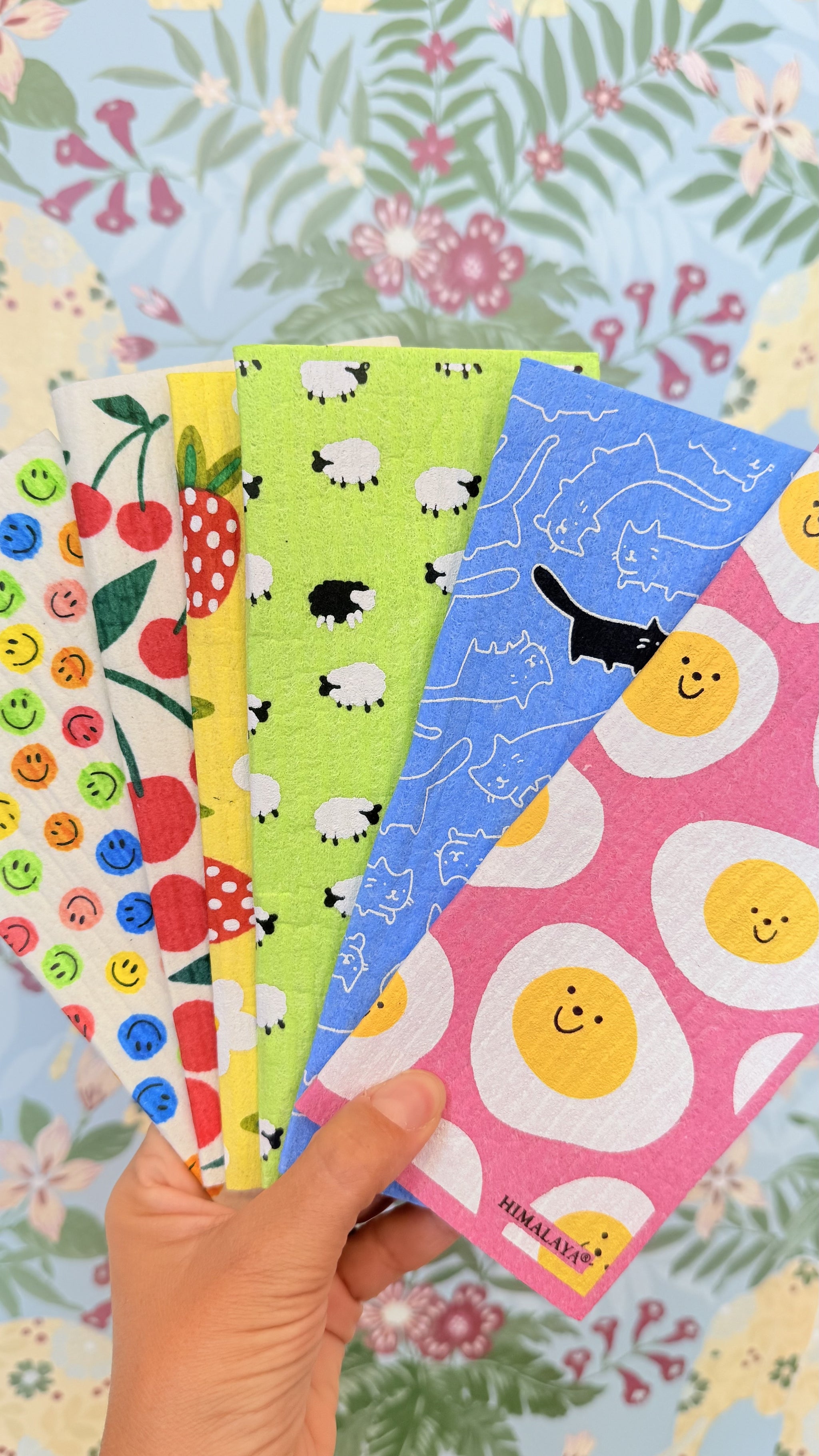 Composte da materiali naturali (70% cellulosa + 30% cotone) e stampate con inchiostri atossici a base di acqua, possono essere gettate nel compost. Lavabili in lavastoviglie o in lavatrice fino a 60°. Assorbenza eccezionale, bagnale e guardale gonfiarsi!